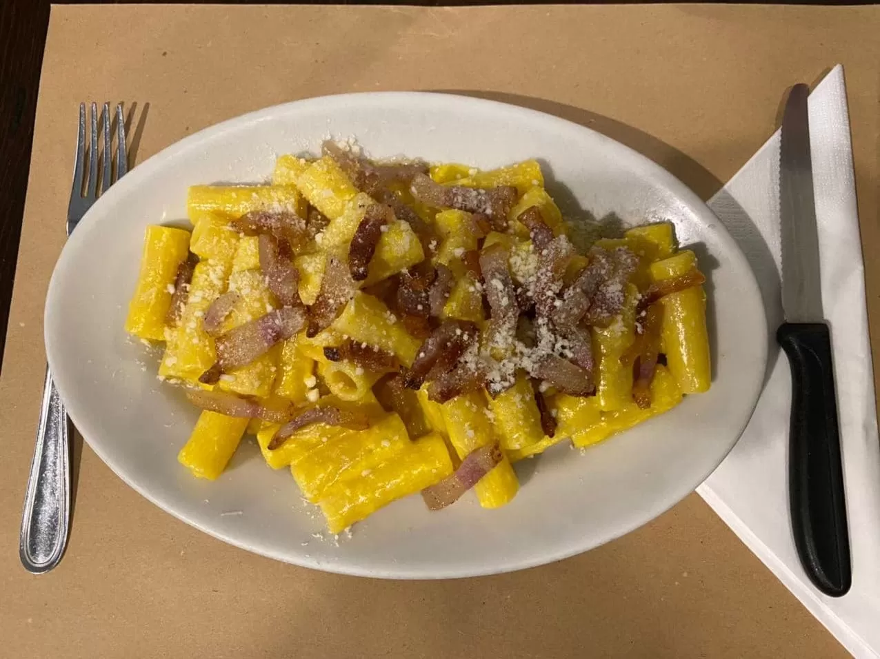 Nonna Maria Osteria Romana propone tutti i tipici piatti della cucina capitolina, ma l’altro piatto che abbiamo deciso di assaggiare è Sua maestà l’Amatriciana. Anche per quest’ultima vale il piccolo neo dell’unica disponibilità della pasta corta. “Difetto” ampiamente coperto dalla moltitudine di pregi: salsa Amatriciana sublime, tipo di pomodoro che va a nozze con il guanciale in questo caso mantecato insieme a tutto il resto, cottura della pasta impeccabile e spruzzata di Pecorino che ti manda in paradiso. Un solo consiglio: provatela.